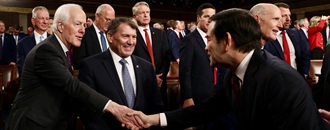 Sen John Cornyn greets SOS Marco Rubio at SOTU February 24