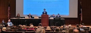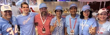 Speaker Dustin Burrows at Tech-UH game with UH President Renu Khator & Houston lawmakers Armando Walle, Carol Alvarado and Ana Hernandez |