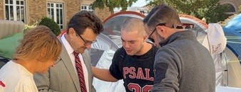 Speaker Dustin Burrows prays before Texas Tech-BYU game Nov 7