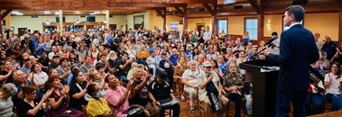 U.S. Senate hopeful James Talarico speaks to fans in Victoria September 27 |